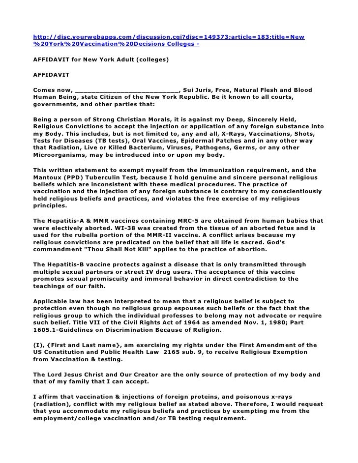 Religious Exemption From Vaccination Sample Writing / Vaccination Exemption Letter Sample Nj 2017 : Religious exemption from immunizations and/or examination form process: